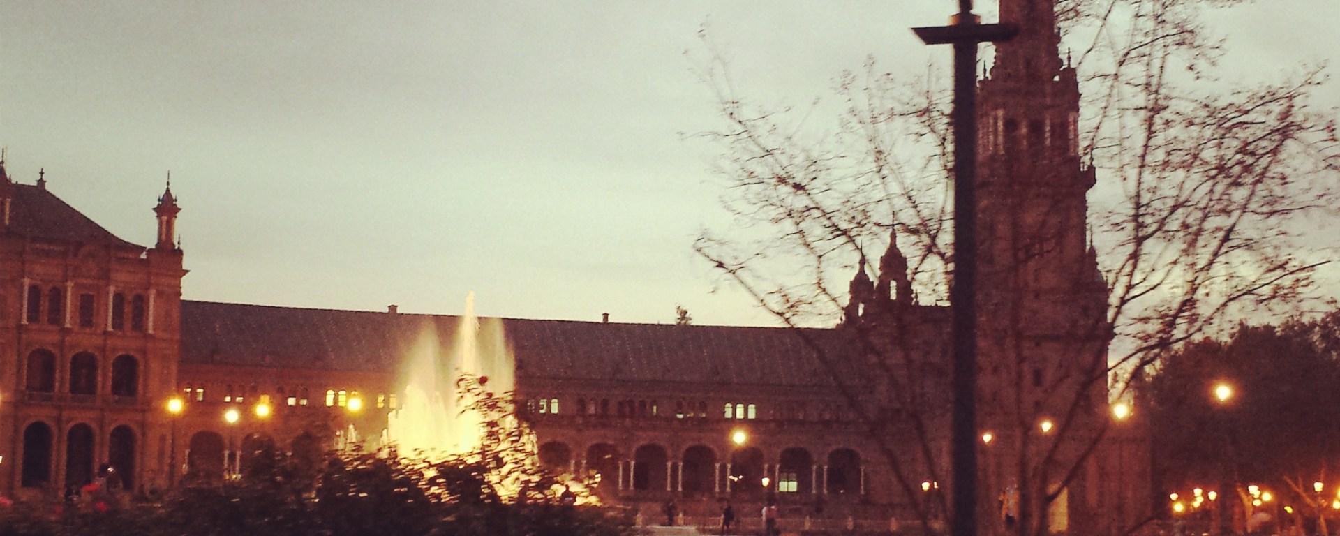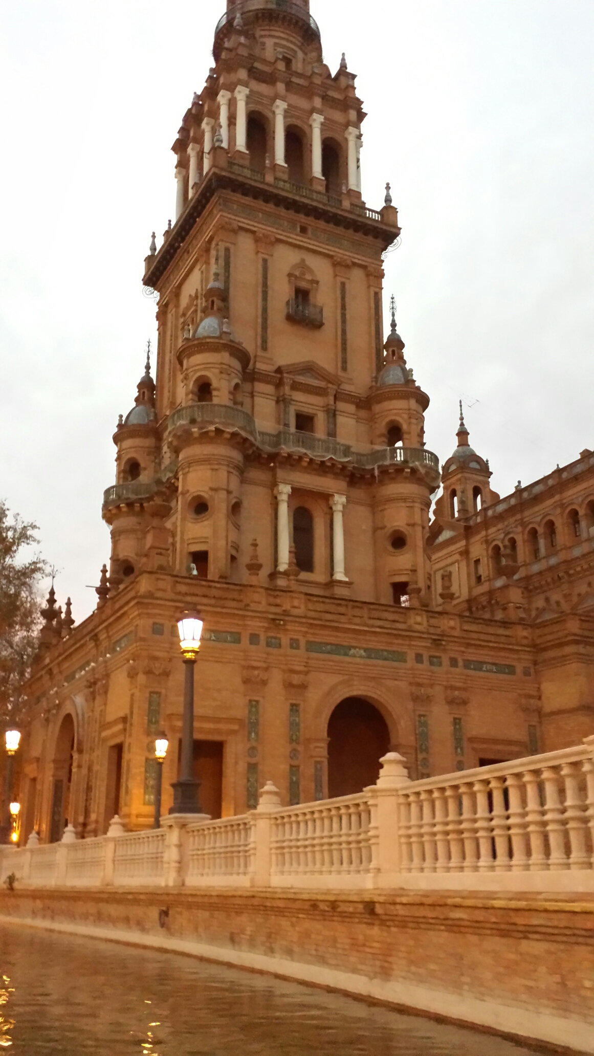 One of the other lovely experiences I had was at the Plaza De Espana. Discovering that I hadn’t been there yet, Eric decided that we would walk there one evening as the sun was beginning to set. We got freshly roasted chestnuts on the way, and walked through the Parque de Maria Luisa, past these grandiose buildings from the 1929 World Fair held in Seville (called the Ibero-American Exposition of 1929) and newly erected Christmas markets. Our timing was perfect, the lighting rom-com worthy as we emerged in front of the Plaza.