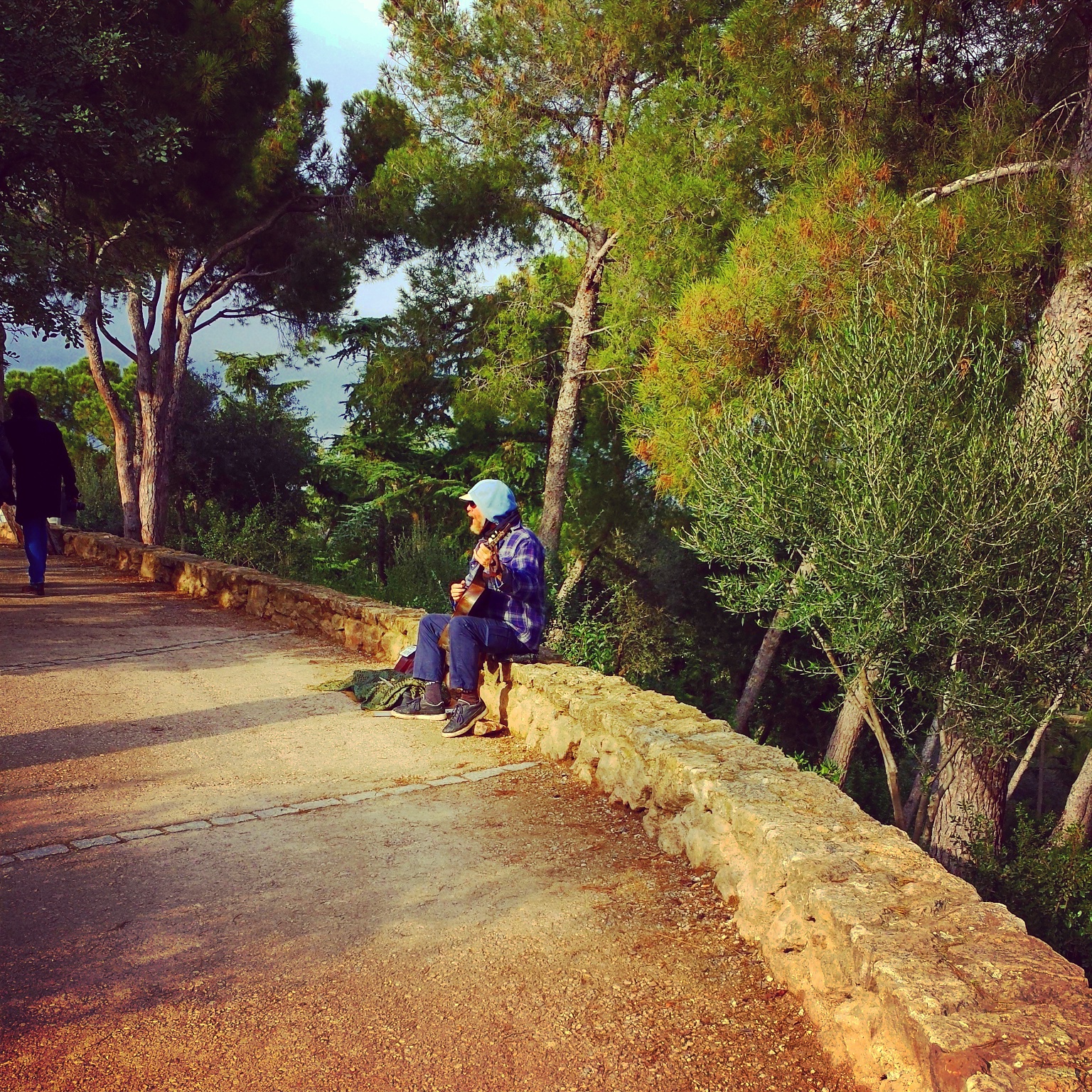 Following that disappointment, Eric suggested we go to Parc Guell. He was so excited about it, having read up on it and seen the pictures of Gaudi’s grand structures. It was nice as parks go, and I liked it – there were cool musicians everywhere, playing the slide guitar and double bass and saxophone, and it was kind of groovy. We wandered along the windy paths, Eric and Ty trying to climb some of the walls and all of us taking ridiculous photos.
