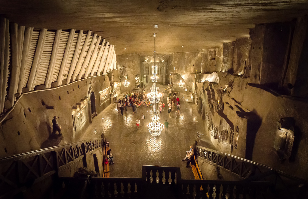 The tour was fairly fantastic though. Wielizcka has been around since the 13th century and it’s huge. You only see 1% of it (or so the tour guide said), but there’s a lot in that 1% and it’s all impressive. They have salt carvings, a salt cathedral, salt chandeliers, reconstructions of age-old equipment that actually work and that you can try using, amazing art, original pieces of equipment, trippy videos, photo exhibitions and other parephernalia.