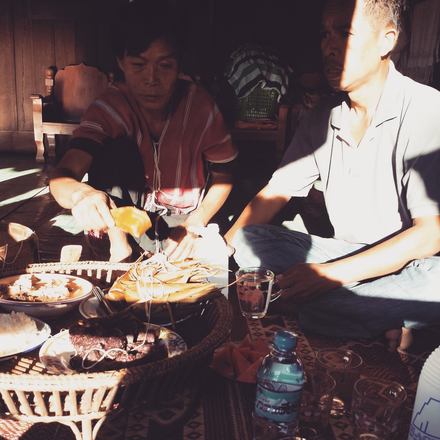 Sam invited us to join in with his family for the New Year’s morning celebrations, which involved large quantities of food and a ceremony in which they chanted and then tied lots of white string around our wrists, which is meant to keep away bad spirits and bring good luck.