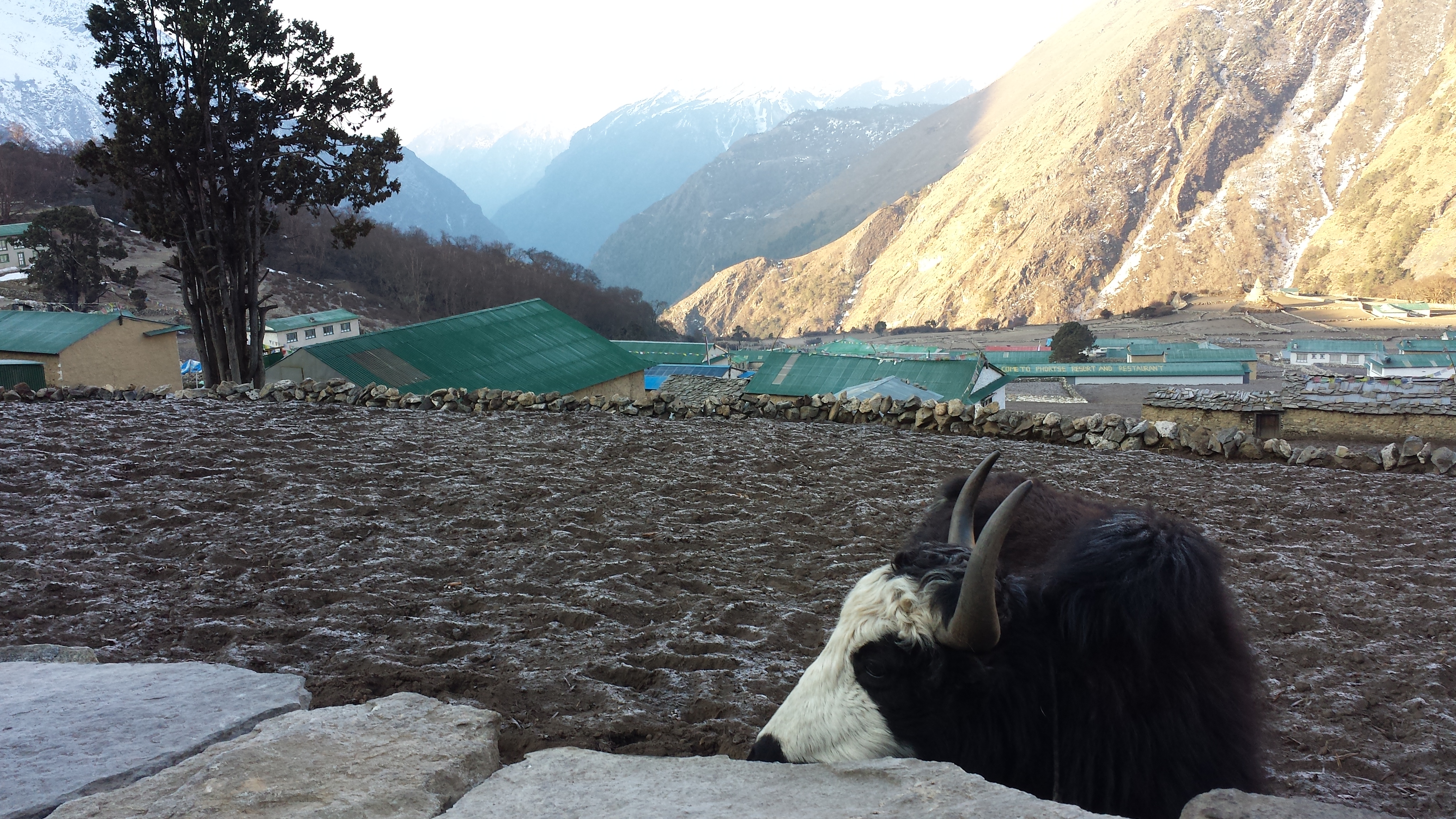 Sometimes we’d go out for walks around the villages in between settling in and dinner, but they were usually just short walks. It was horrendously cold, you’d been walking all day, and apart from a few bigger places like Namche and Tengboche, there was nothing to see – just a few teahouses, some fields of potatoes and onions, and a couple of grazing yaks. And you could see all those things from inside the tea house – they always had stunning views of the surroundings.