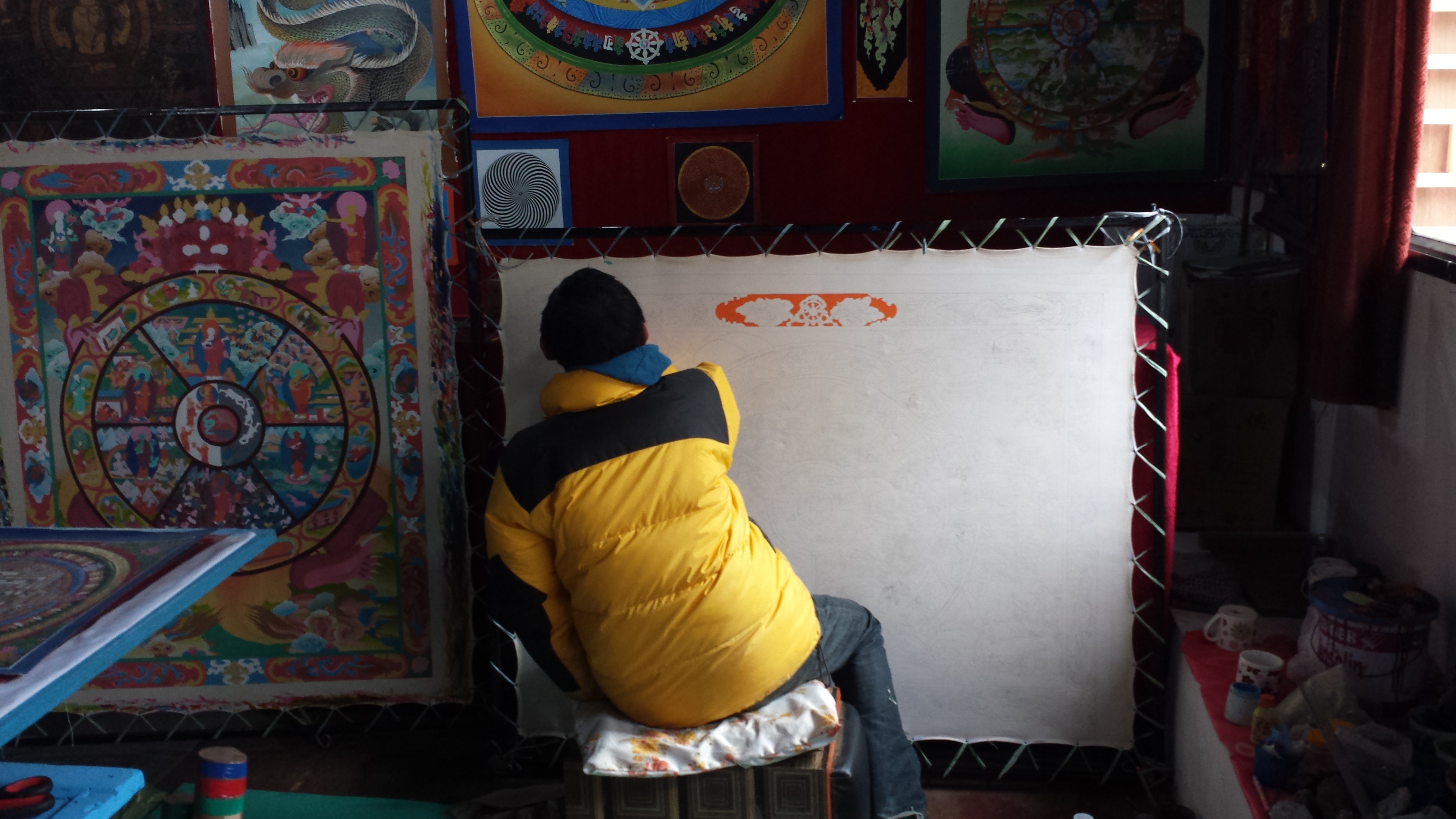 Namche’s not huge; you can walk from one end to the other and visit pretty much every single place there in about an hour and a half. My favourite was a gorgeous little art gallery that didn’t mind that Em and I were too poor to buy anything and let us go upstairs to where one of the artists was painting elaborately detailed canvases to watch him at work. Also of note was an itsy bitsy library ‘Khumbu International Library‘ – which, if you carry any books with you and finish reading them, you should totally donate said books to!