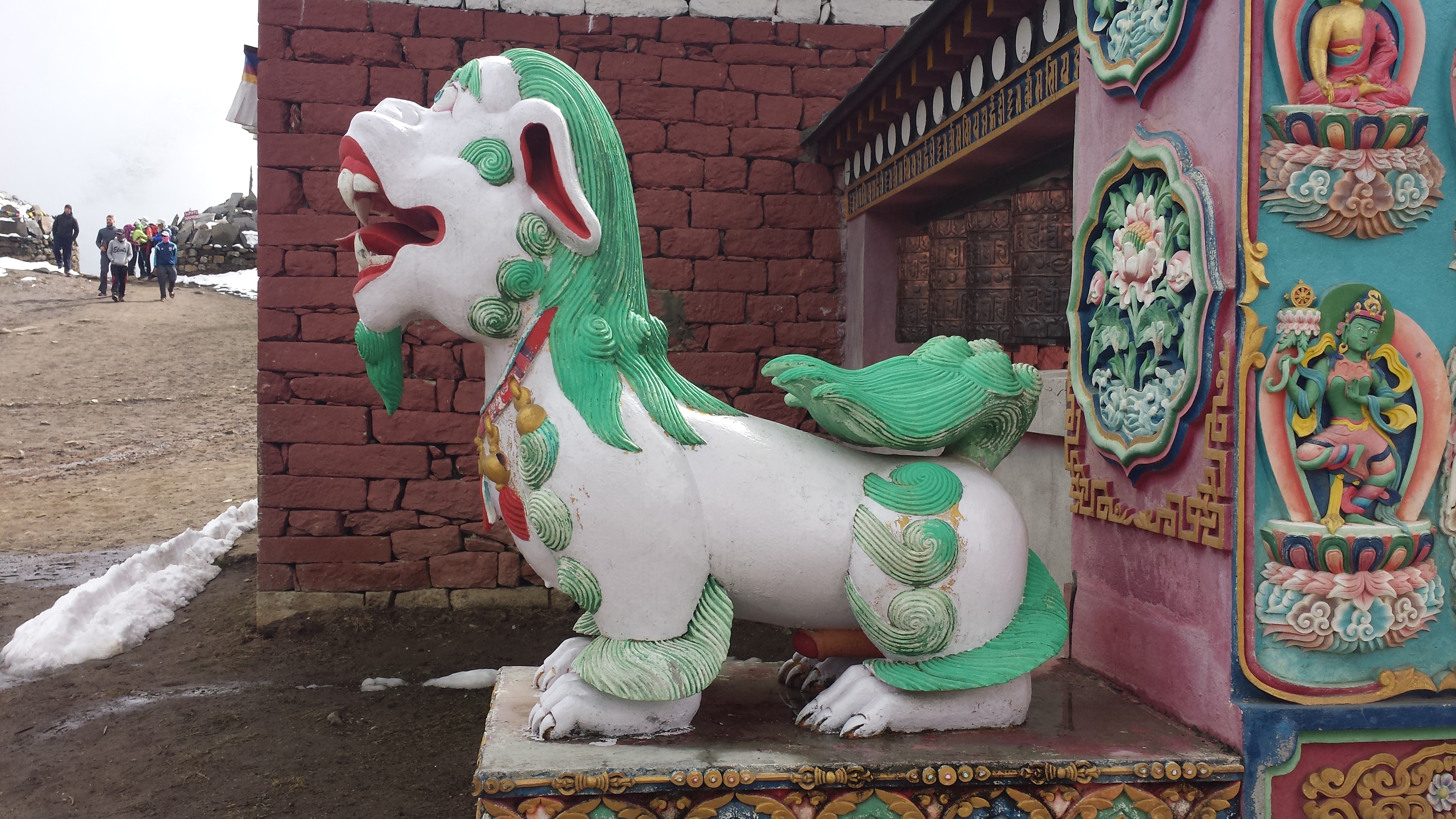 Close to Namche is the Sherpa Cultural Museum, which is pretty cool. It’s small, which I think is important for museums – I never have the attention spans for big ones – and they had this great film about Hillary playing. A little bit away from that was a helicopter landing pad, ambitiously called Syangboche Airport. We watched a helicopter land, our guide only telling us at the last moment to duck so that I ended up with a HUGE cloud of dust and debris getting into my eyes and mouth and nose and ears. Pro-tip: keep well away from landing helicopters.