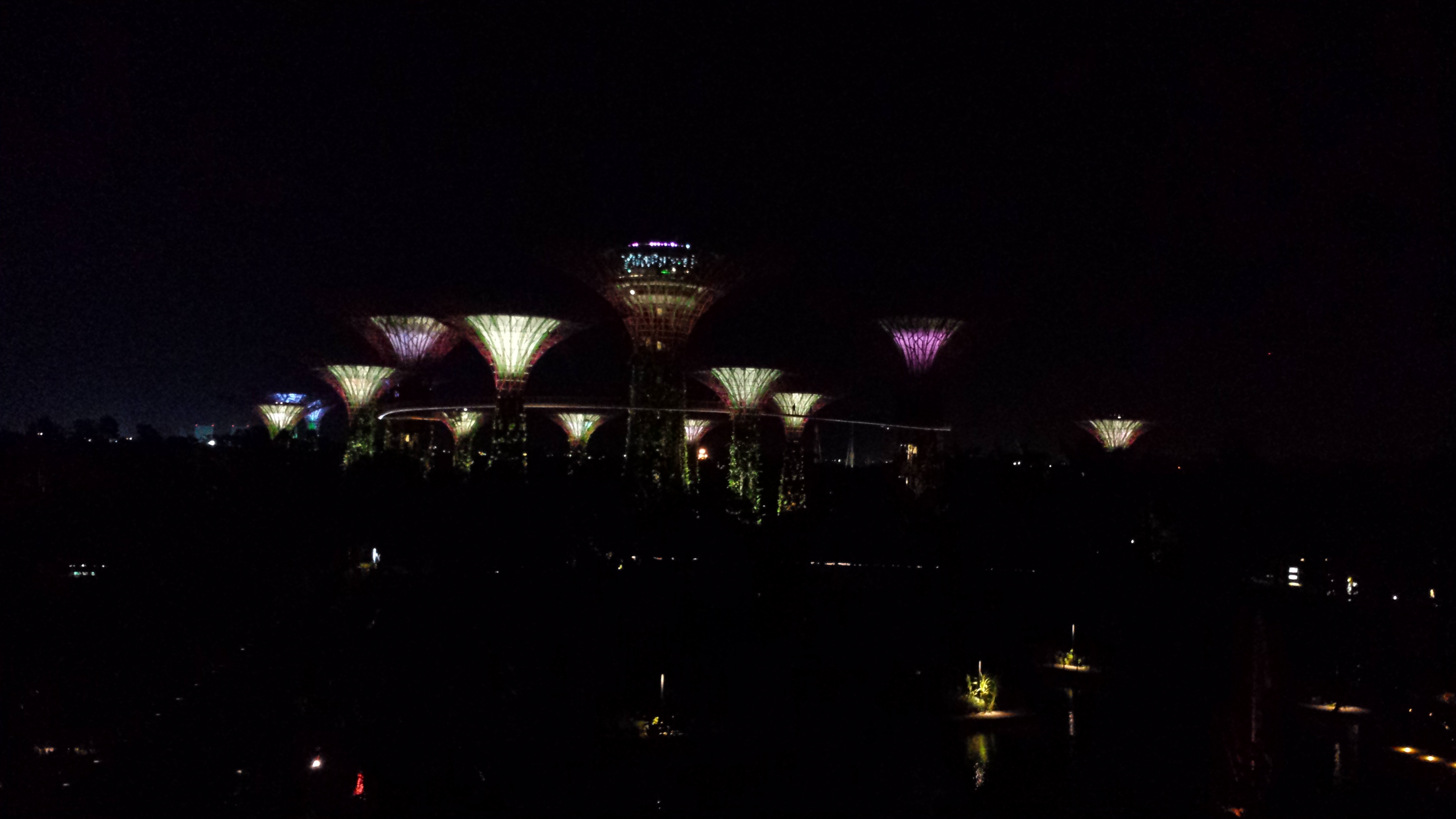 Dinner over, we meandered over to the walkway of the Marina Bay Sands, from which we had a perfect view of the Supertree Grove and were just in time for a spectacular sound and light show. I’d read about this on my flight over but they were far more majestic to behold in real life.