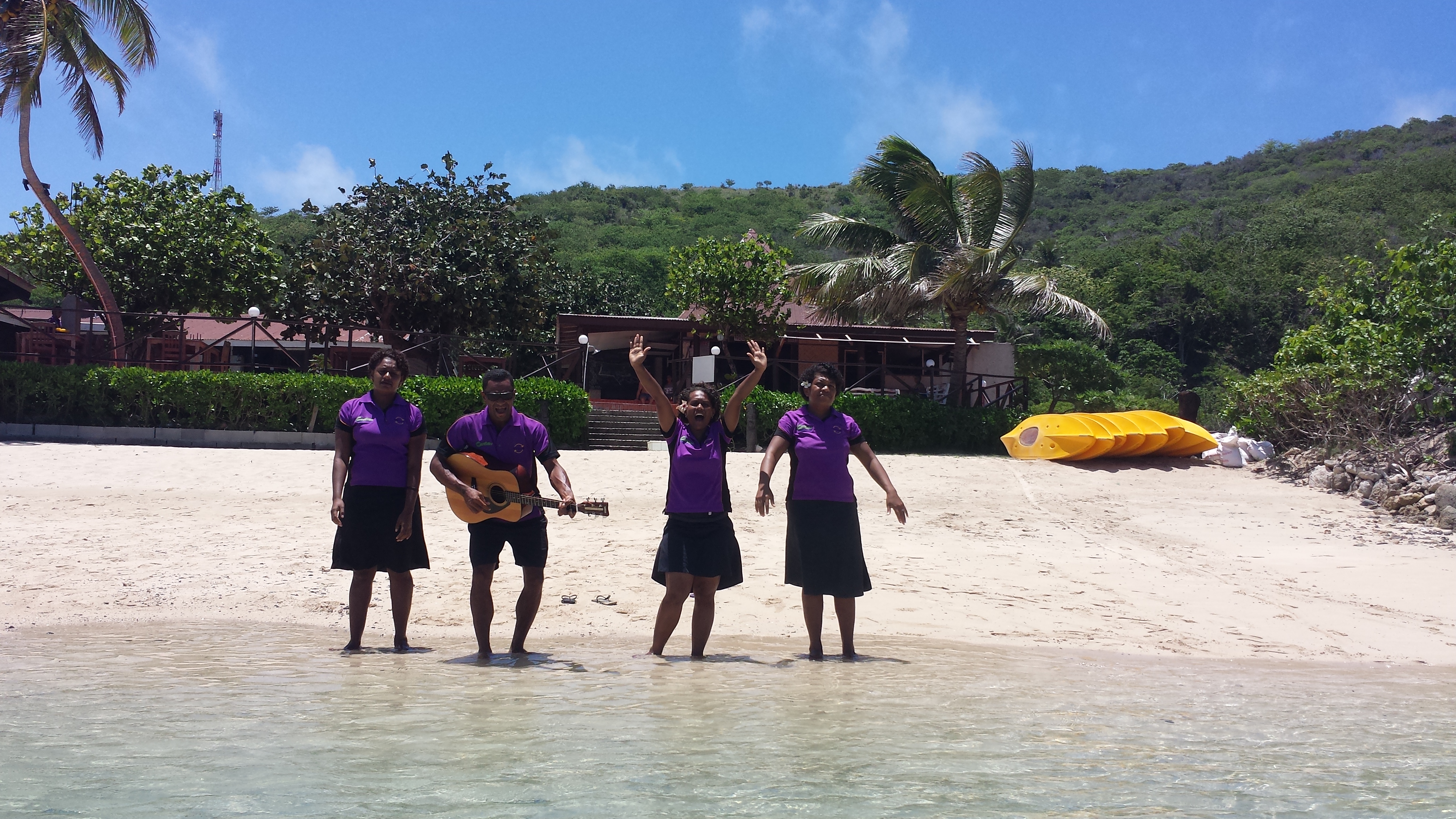 I’m not sure why Fiji Experience booked us onto this, but instead of getting picked up at Port Denarau, which is right around the corner from Nadi, we got picked up at 7:15am to go on a long drive down the coast to Anchorage Resort, and had to get on a boat there. The drive was awful – it had been raining heavily and our minivan kept hydroplaning – I put my seatbelt on and held on tightly, pretty sure we were going to crash, but despite a seriously unnerving number of close calls, we made it to Anchorage alive and just slightly jittery.