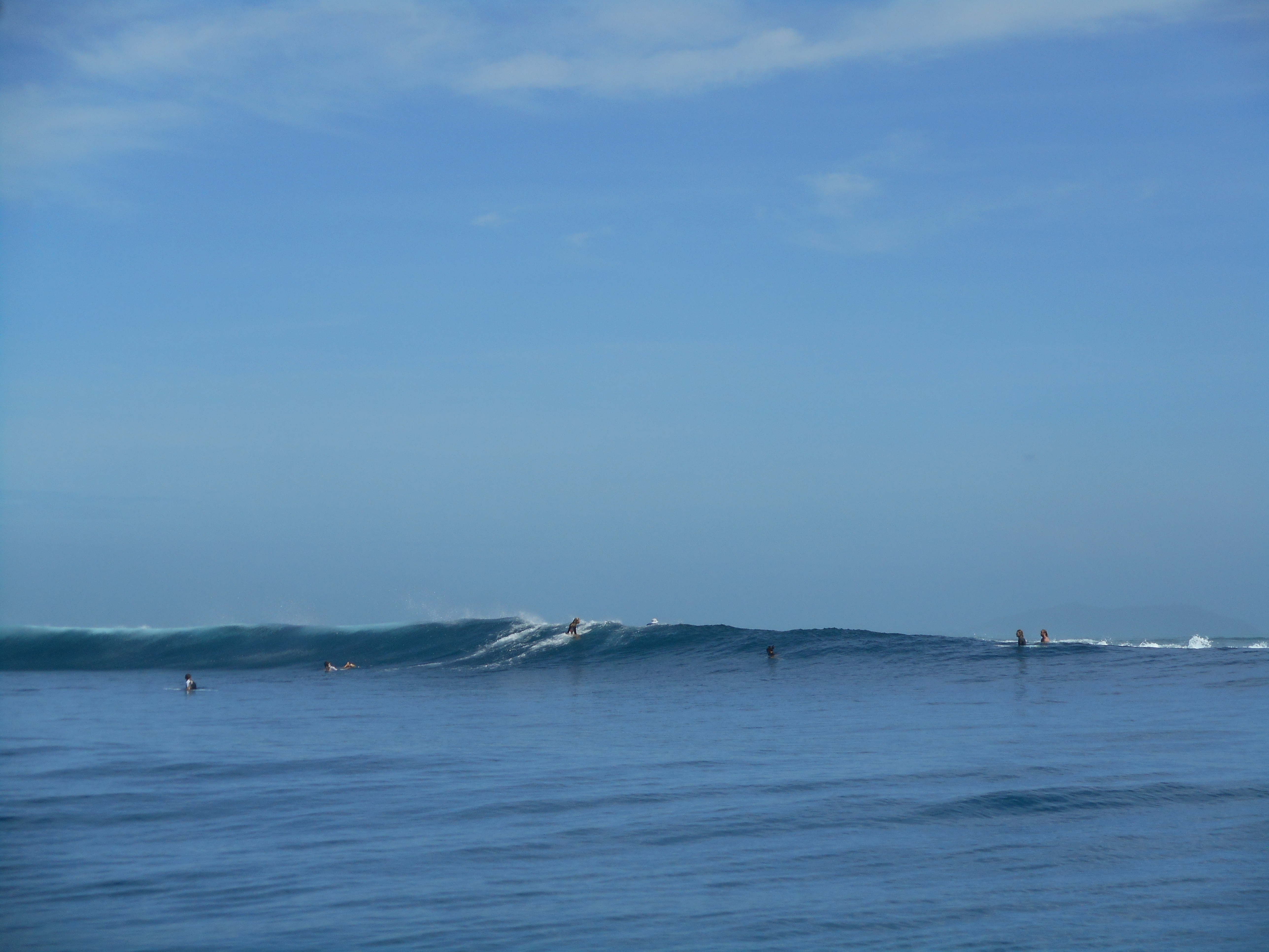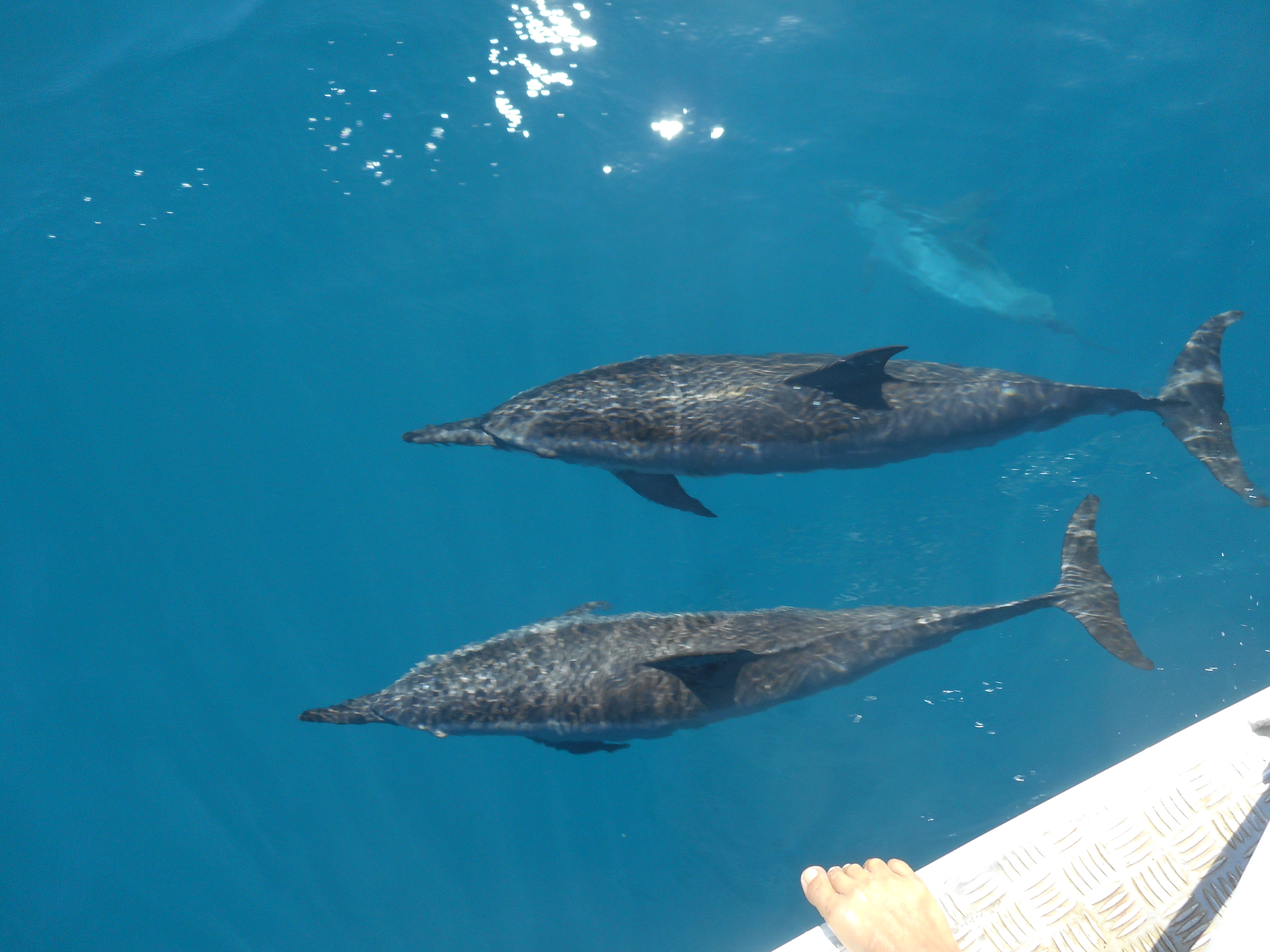 It was such a great way to spend a morning – and Sabine had bought a whole lot of fruit and snacks for us too, and while we breaked in between dives, we watched surfers at Cloud Break and then chased dolphins as they leapt playfully around our boat.